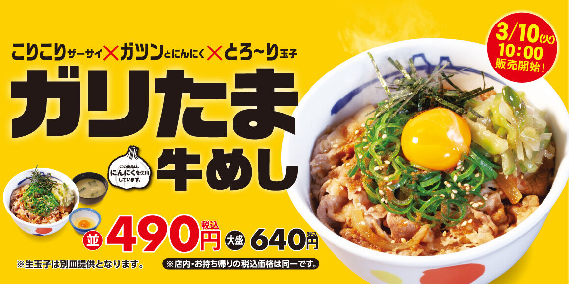 2020年3月10日(火)午前10時より、「ガリたま牛めし」を発売いたします。