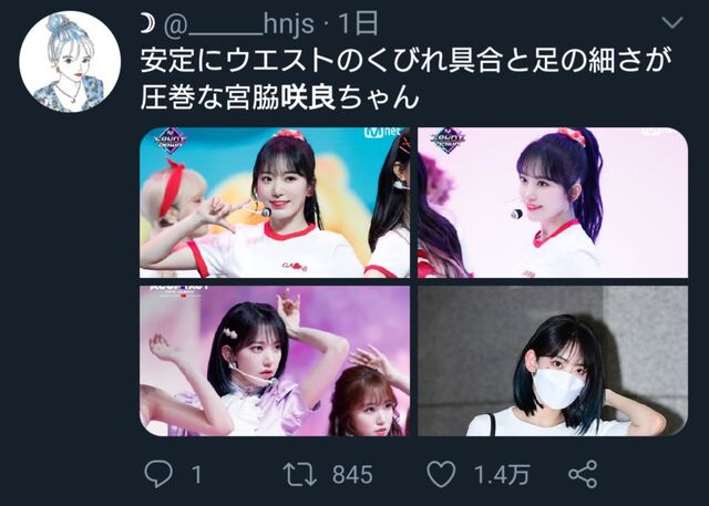 安定にウエストのくびれ具合と足の細さが圧巻な宮脇咲良ちゃん