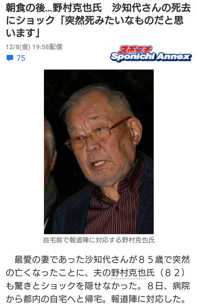 【悲報】妻・野村沙知代さんを亡くしたノムさんが憔悴しきってる…。