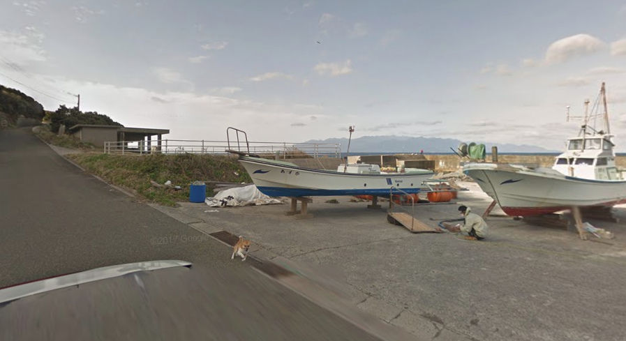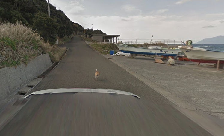 鹿児島県の種子島の砂坂漁港のストリートビューにて珍シーンが映されていた。それはボードの近くに居た犬がその付近を撮影している車を発見した犬が、Googleストリートビューカーを追走するというもの。犬は猛ダッシュで車を追いかけるも、その先は行き止まり。結局ストリートビューカーはそこで停止することになり犬に追いつかれてしまった。