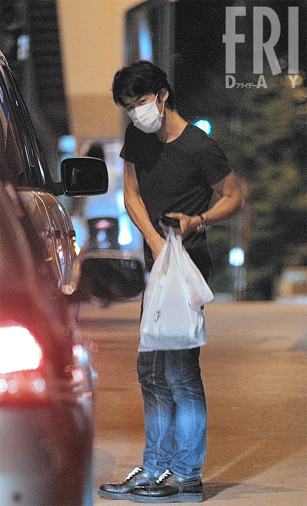 熱愛発覚当時の竹野内。いつもはキャップ&マスクの“完全防御“で顔を隠す彼にしては、珍しいショットだ