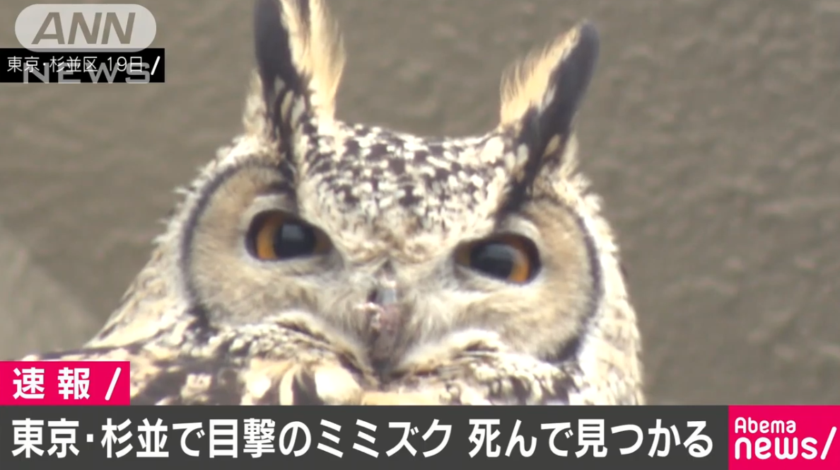 東京・杉並区で目撃されていたミミズク、死んでいるのが見つかる