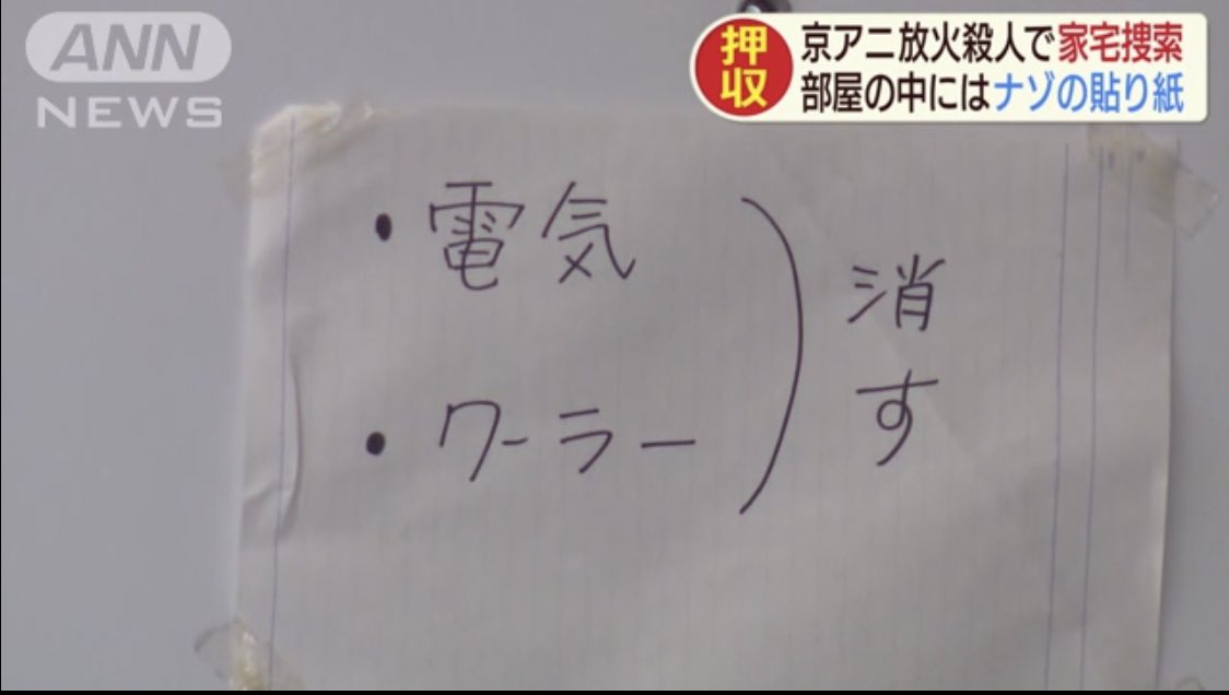 HOME > Topics > Topics 京アニ放火犯の部屋からナゾの張り紙が見つかってしまう 投稿日:2019年7月29日 京アニ放火犯の部屋からナゾの張り紙が見つかってしまう 1 :風吹けば名無し :2019/07/28(日) 08:36:02.95 ID:n1UT/hRe0.net これは犯行と重大な関係がありますわ 21 :風吹けば名無し :2019/07/28(日) 08:39:45.45 ID:dgX/vbHfa.net 謎…? 130 :風吹けば名無し :2019/07/28(日) 09:08:04.80 ID:H5Plf2u60.net 言うほどナゾか? 続きを読む Twitter Share Google+ Pocket B!Hatena LINE -Topics
